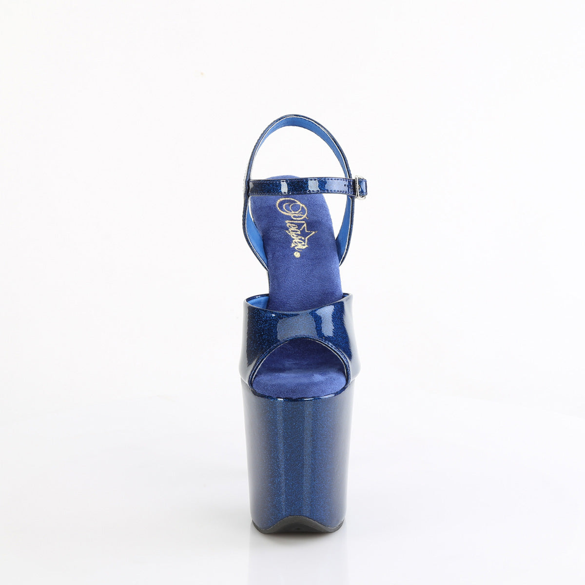 Zapatos de plataforma para pole dance completamente escarchadas: plataforma, correas y taco.