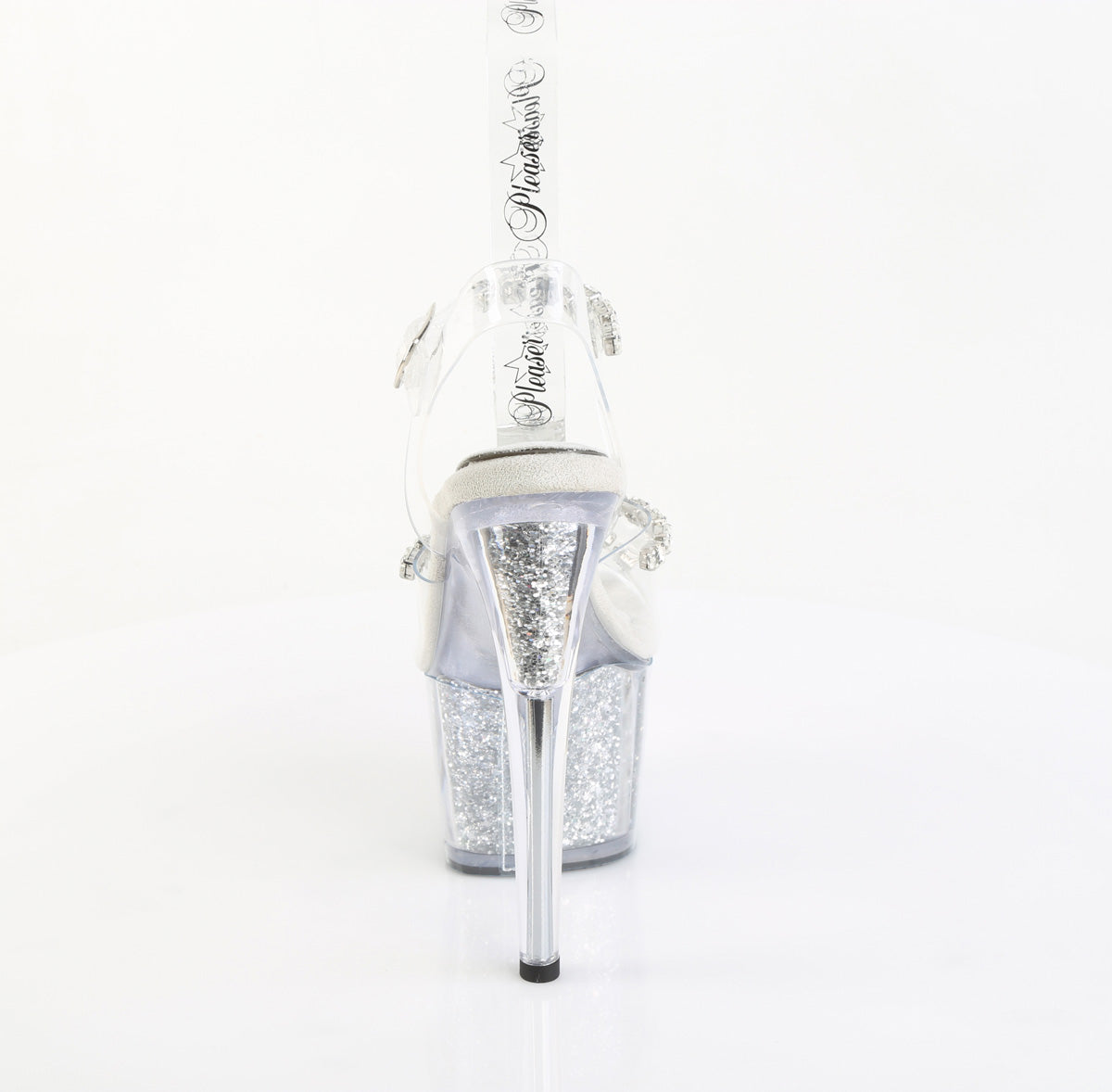 Zapatos de plataforma para pole dance con correas transparentes.